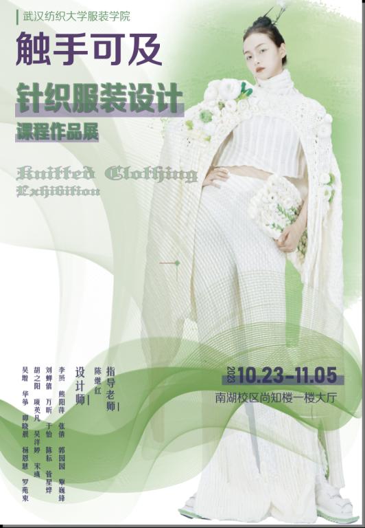 《触手可及》的针织服装优秀作品展在综合楼展出。此次展出作品由由陈继红副教授悉心指导,19位学生设计师倾力打造共40余套针织服装。