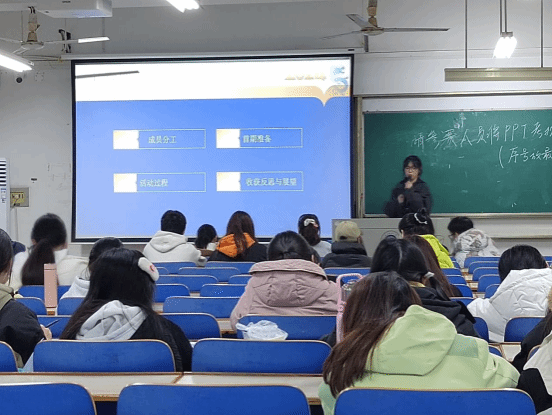 在南湖校区尚知楼5411教室举办2024年“把最美纺大带回母校”寒假社会实践院内选拔赛,30余支校级立项团队参加答辩。