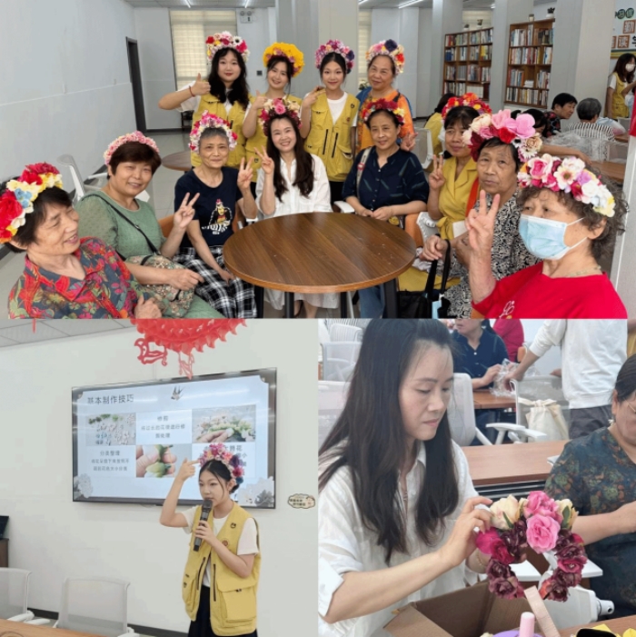 “今生簪花,来世漂亮”。簪花也称戴花、簪戴,就是将鲜花或是其他材料制作的花朵戴在头上,同时也是国家非物质文化遗产之一。在活动中,志愿者讲解了簪花的历史渊源、制作技巧以及审美要点。老人们跟随志愿者通过自己的精心制作,收获了各种样式的簪花。制作完以后,老人们将自己的簪花作品佩戴了起来,寓意着自己勇敢追求美好生活的向往和对生活的热爱。