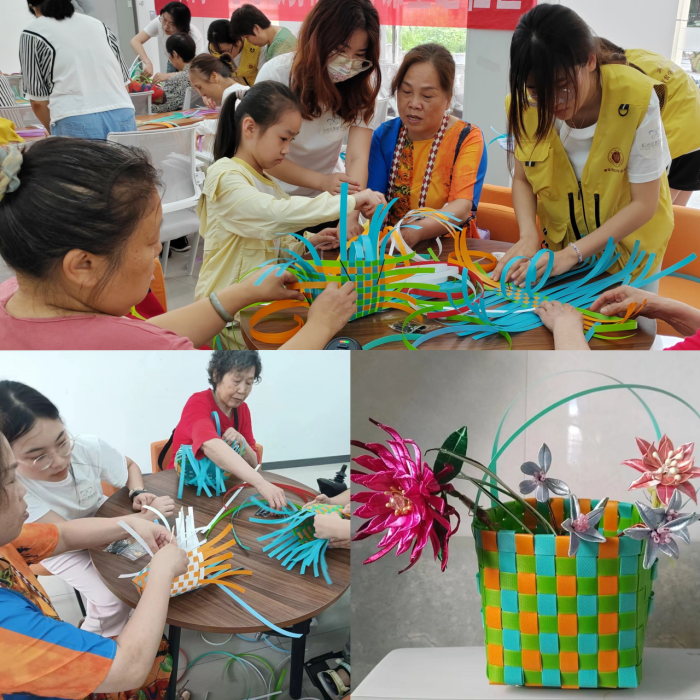 手工编制篮作为一项传统手工艺,具有实用性和美观性。在志愿者的耐心讲解下,老人们学习并掌握了编织技巧,教室里充满了欢声笑语,在轻松愉悦的学习氛围里大家渐渐进入状态,沉浸在编织的快乐里。经过两个小时的课程,老人们都制作了自己的作品,一个个陶醉其中,成就感满满。