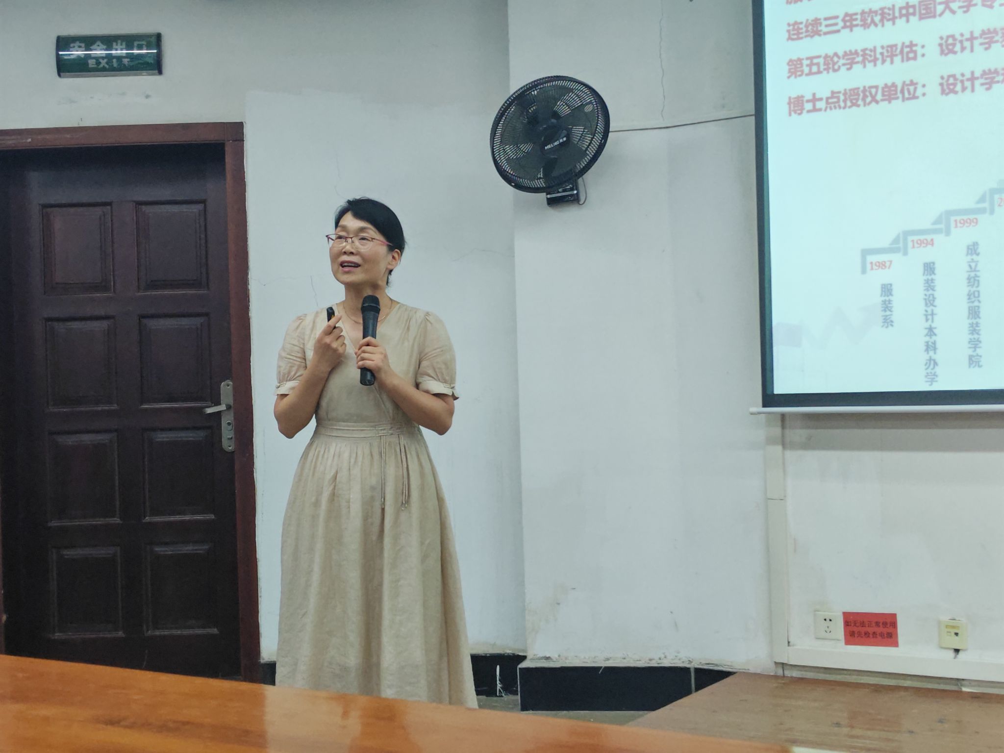 的中日合作办学项目进行了简单介绍,对今年来涌现出来的优秀学子进行介绍,期待学生们能够以先进典型为榜样,充实自己大学四年的时光,为服装设计师的梦想去大胆追寻。