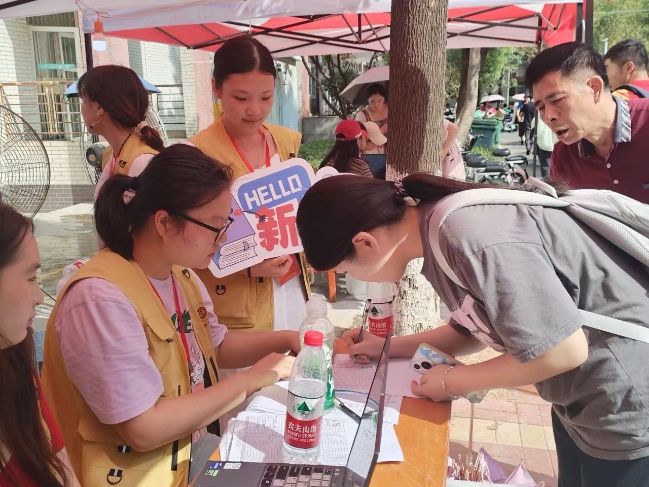 以满腔的热血和细致的准备,同时在阳光校区和南湖校区设立迎新点,开展“全方位”、“一站式”迎新。50余名志愿者身着黄色马甲,如精灵般穿梭在校园内,用心用情迎接每一位新同学的到来。迎新现场布置温馨有爱,为新生们铺设了一条充满惊喜与温暖的入学之路。