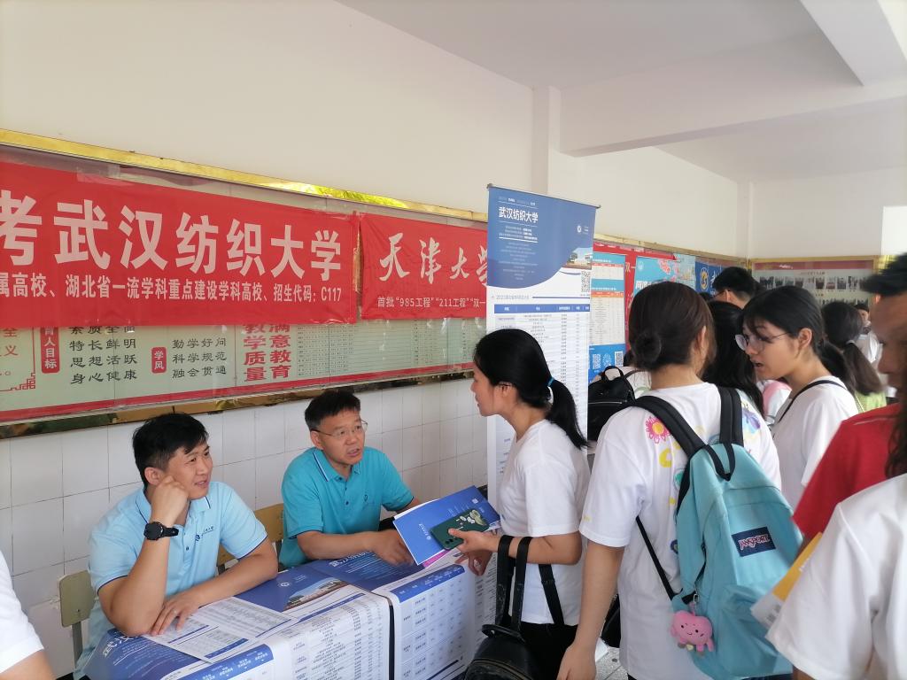 (党委书记杜新年带队在钟祥一中为学生解答招生问题)