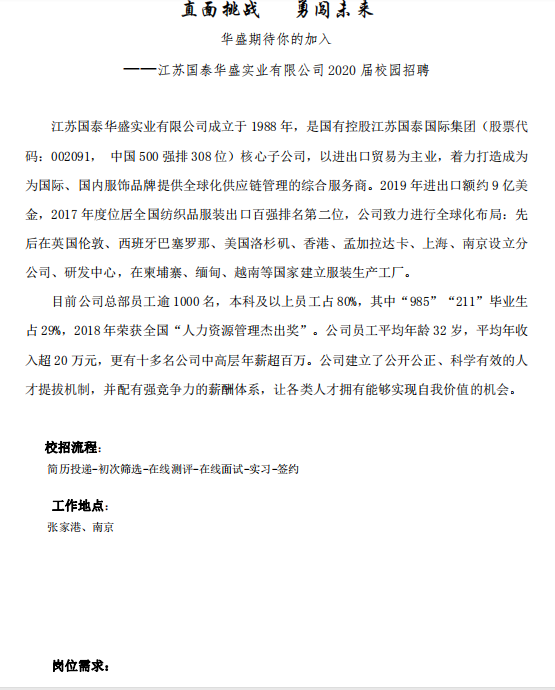 江苏国泰华盛实业有限公司来我院开展线上招聘活动