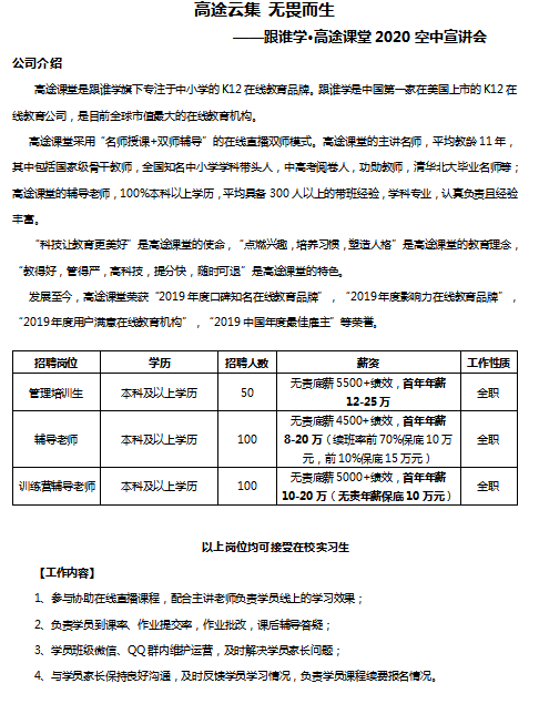 跟谁学-高途课堂来我院开展线上招聘活动