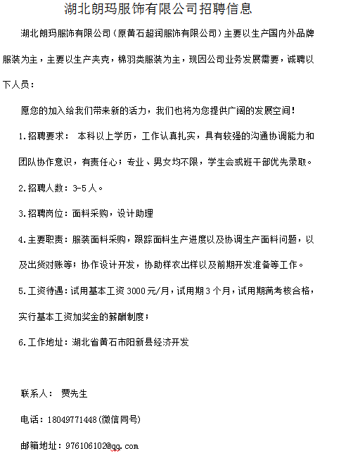 湖北朗玛服饰有限公司来我院开展线上招聘活动