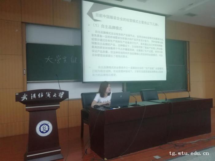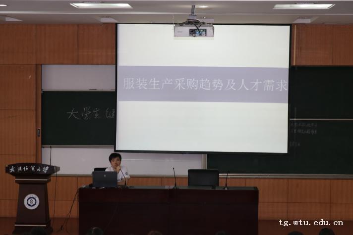 第四位是来自中国依恋集团的陈在涛学长,学长跟大家讲述了服装生产采购趋势与人才需求。学长向大家介绍了服装企业的岗位以及技能需求,包括:企划部、设计部(款式设计师、素材设计师、图案设计师)、生产部、技术部、陈列、广告、装潢营业部等等。同时学长也给了大家一些工作上的建议:1.了解自我,找适合自己的岗位、2.工作不是为了赚钱,是为了更好地生活、加班不代表努力工作、3.懂得分享,学会感恩4.做一个积极乐观的人。