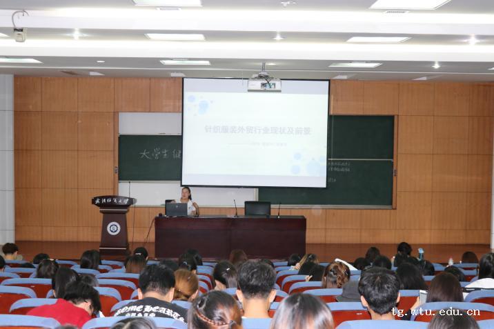 第三位是来自诸城裕泰针织有限公司的张素玲学姐,学姐向大家介绍了外贸行业的现状及前景。学姐也向大家介绍了关于北京、上海等大都市的服装品牌主打方向,外贸企业的主要群体:无实体的贸易公司、工贸一体的实体工厂。同时也告诉大家,如果想做好贸易方面的工作,学好外语很重要,并且能与供应商进行良好的沟通、做好设计助理、懂工艺和面料、经常跑市场也是大家需要去努力的方向。