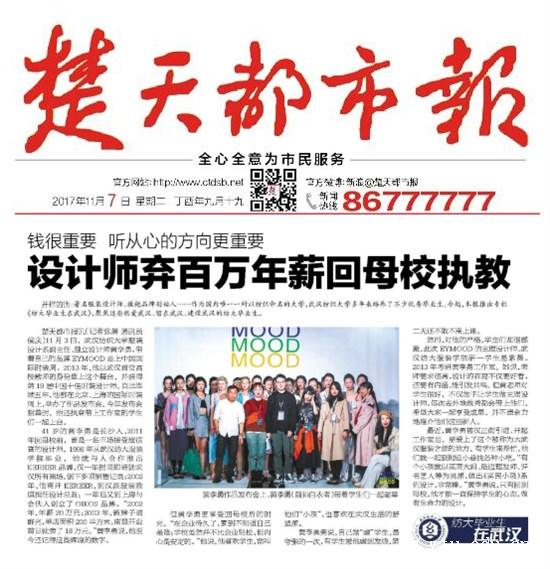 开栏的话:著名服装设计师、旗袍品牌创始人……作为国内唯一一所以纺织命名的大学,武汉纺织大学多年来培养了不少优秀毕业生。今起,本报推出专栏《纺大毕业生在武汉》,聚焦这些热爱武汉、留在武汉、建设武汉的纺大毕业生。