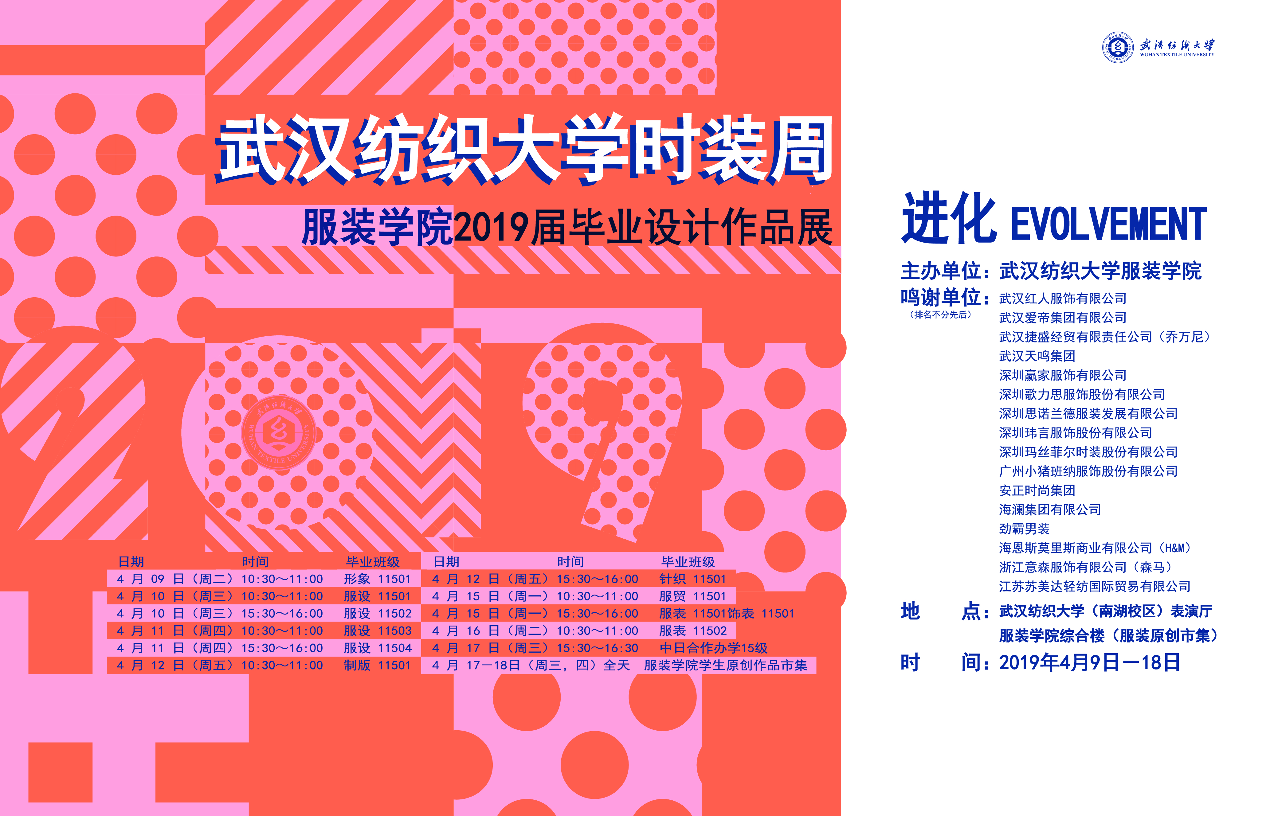 传播时尚文化,弘扬时代精神。2019武汉纺织大学时装周暨2019届毕业生毕业设计作品展将于2019年4月9日在南湖校区表演厅启幕。