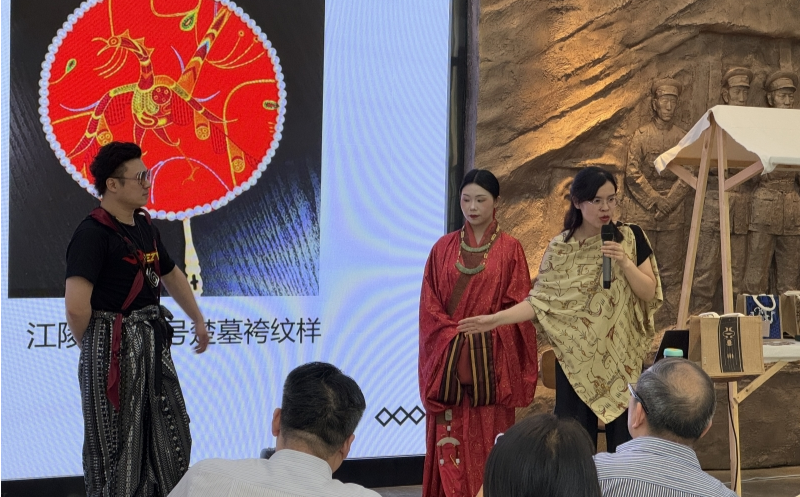 武昌城史馆作为湖北省首个区级城史馆,自2024年3月开馆以来,已成为武汉市民和游客了解武昌历史脉络、感受城市精神的重要窗口,为这场文化雅集注入独特的人文气场。现场,武汉纺织大学楚服研究专家、《衣以载道》作者郭丰秋教授携其十余年研究成果,系统阐释了楚服纹样的文化密码、深度解读了楚服纹样中暗藏的“无字史书”。