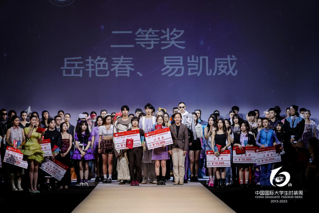 经过前期的准备和评审,最终评选出10名优秀学生作品获“歌力思”可持续时尚奖学金。一等奖一项;二等奖两项;三等奖三项;最佳材料奖、最佳创新奖、最佳文化传承奖、最佳市场潜力奖各一项。在中国国际大学生时装周武汉纺织大学专场展演结束后,举行了隆重的颁奖典礼。