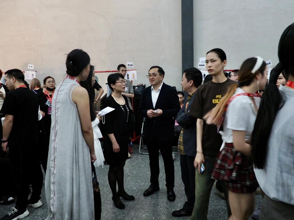 在中国国际大学生时装周发布会彩排现场,副校长傅欣在中国体育博彩