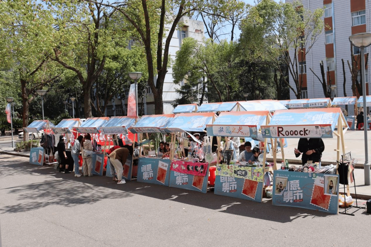 “光•荟”创意集市,是学生的创意展示平台。本次集市,从50余个集市中遴选出39个摊位进行摆摊,展品从精美的成衣到精湛的泥塑,再到精巧的毛毡工艺品;从我校纺织科技助力航天强国为主题原创丝巾到学校文化IP的领带;从产教融合的共青城原创羽绒服饰到别具一格的大漆手工定制团扇,每一件展品都是同学们心血与智慧的结晶。学生们在集市上实践着自己的创业理念,并且在沟通中锤炼自己的交际能力、沟通能力和经营能力,响应国家的号召,践行创新创业理念。